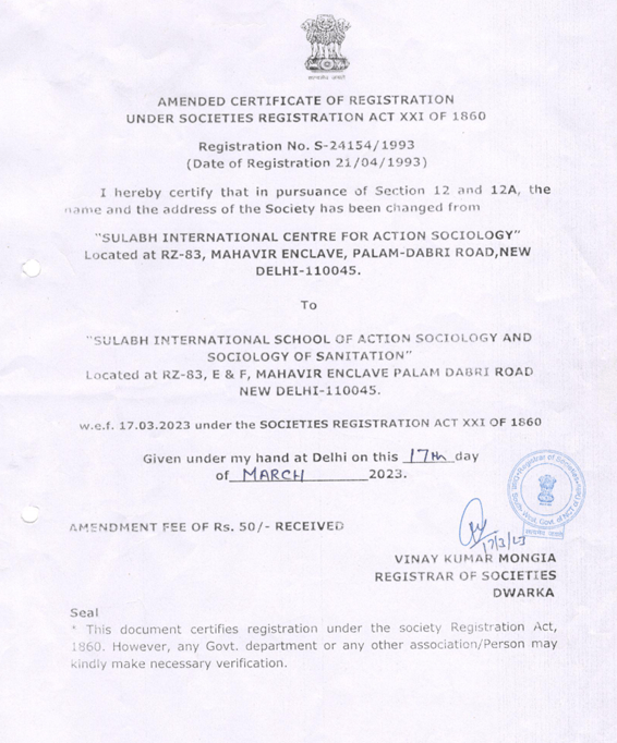 Society Registration Certificate